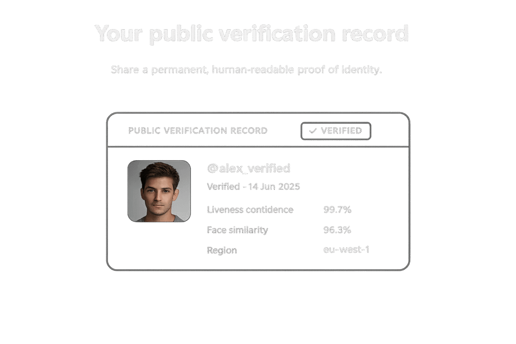 Receive a public verification page confirming your verified identity.