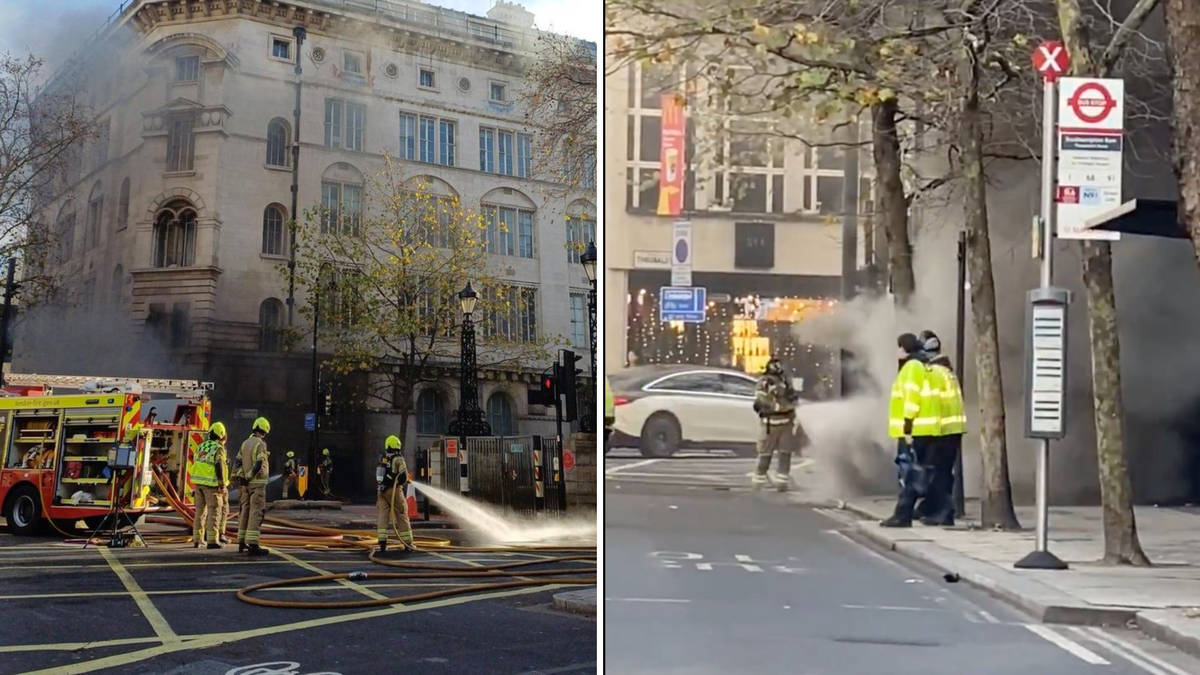 70 firefighters battle central London blaze as thick smoke erupts from underground tunnel close to station