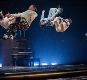 Set in the depths of winter, Blizzard takes the cold as its starting point and turns it into a playground. Snowballs bounce, blizzards swirl, and the stage becomes a constantly shifting landscape of physical invention. There’s a strong vein of old-school physical comedy running through the show, echoing 1920s slapstick and silent cinema, which showcases key performers’ theatrical abilities, but it’s paired with extraordinary athleticism and contemporary circus skill.